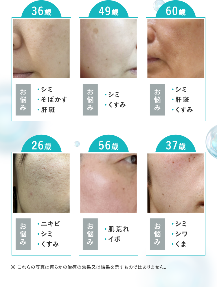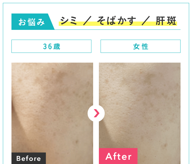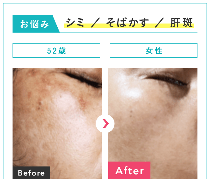 お悩み: シミ・ソバカス・肝斑,くすみ,日焼け,顔の赤らみ,イボ